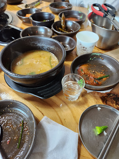 Read more흑염소 전골이 유명하다고 한다. 단양에서 제일 맛있던것 같다. 17개월 아기도 흑염소고기 맛있게 먹는다. 다만 껍데기는 질기다기보단 많이 쫀득하며 씹기 어려울수있다. 전골국물은 조금 많이 쫄여서 먹는게 훨씬 맛있다. 볶음밥도 맛이있지만 볶음밥 양념은 조금 줄여서 넣는게 더 좋을거 같다. 좀 짜다. 이집의 제일은 반찬인듯.... 모든...