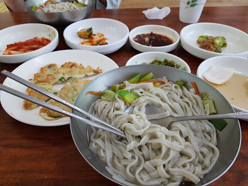 칼국수 먹었음 가격 착하다 옛날칼국수맛이다 담백한 경상도맛이다 육수는 별도로 맛을내지않기때문에 호불호가 있을수있다 고추장물을 넣어서 먹으면 더맛있다 가성비 좋다 아직까지 주류가격도 착하다 반면에 청결상태가 매우 안좋다 밑반찬 절대 재사용하지 않는다고 붙여놨는데... 재사용하는걸 봐버렸네요.. 남은 반찬을 다시 반찬통에 다 넣어서 재사용한다.. 2번먹고 2번다 배탈났다 청결이나 재사용 ...