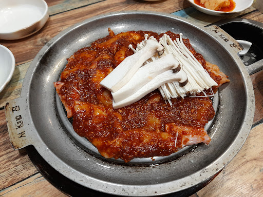 Read more본점은 구미에 있는데 이 프랜차이즈만의 특색인지는 모르겠지만 새콤한 국물은 처음 접하는 사람은 호불호 확실히 갈릴 듯 하나, 익숙해진 사람에겐 마성의 맛. 예나 지금이나 한결같이, 데친 콩나물 건져 내 무치고 나면 휑해지는 냄비에 밥한공기 다먹기 살짝 모자란 양의 복어 도막 들어 있음. 복어가 비싸 그런 거겠지만 그래도 밥한공기는 거뜬히 비울만큼 찬을 더 곁들이든 양을 늘리든 하면 더 좋겠음. 요즘같은 COVID-19상황에서는 이집처럼 따로 방에서 먹을 수...