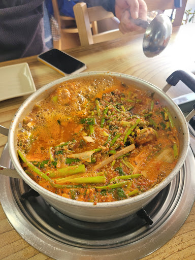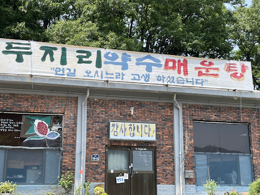 정확한 이름은 두지리약수매운탕집이다. 약수매운탕 찾으면 다른 데로 가게되니 주의. 다른 매운탕집은 근처에 모여있지만 여기는 조금 떨어진 외딴 곳에 있다. 갓길에서 100여미터 들어가면 언덕 오르막길. 비포장도로. 희한하게 중독성이 있는 국물 맛. 이곳에서 매운탕을 맛보게되면 다른 곳은 갈 수가 없게된다. 먹어보면 안다. 주차공간 충분. 남자 입장에서 남화장실은 조금 부족하고 손 씻는 곳은 주차장 옆 세숫대야에 비누가 있다. 이런거 감안하더라도 서울에서 2시간 걸려서라도 먹으러 가고 싶은 마음이 생긴다. 내가볼땐 메기+빠가사리+꽃게메뉴가 이상적이고 매운탕 중자가 3만 원이고 대자가5만 원. 수제비랑 먹을 때도 일품. 저녁장사를 안 한다고 하므로 4시 전에 가야한다고 한다. 가기 전...