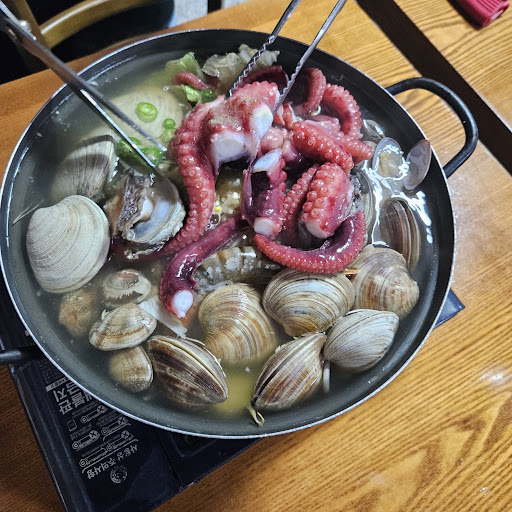 사진사기일줄 알았는데 사진이랑 똑같이 나왔어요. 가격대비 해물 퀄리티도 좋았고 푸짐하고 국물이 엄청 시원해요. 저는 문어가 이렇게 야들야들하고 맛있는음식인지 몰랐어요. 제가 콩나물 킬러인데 콩나물도 수북하게 들어가있어서 원없이 먹었고 칼국수 끓이니까 그것도 그거대로 맛있었고.. 사리 따로 추가할필요없이 든든하게 먹었고 차량때문에 술을 안먹었더니 1인 2만원으로 정말 맛있게 먹고왔네요. 먹을때도 저렴하다고는 생각했는데 다시생각해보니 미친것같아요. 주차공간은 협소한 편인데 추가로 주차할수 있는지는 잘 모르겠어요. 다음에 파주갈 일이 생기면...