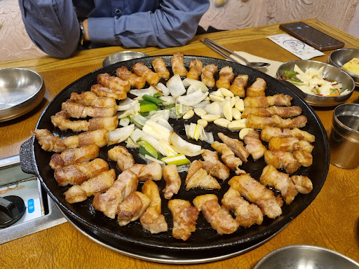 예약 받으실 때 우리집 삼겹살 맛있어요~라고 자신 하시던데, 일단 그정도 자부심은 부릴 정도의 맛이었음. 홀은 넓어서 약 40명은 충분히 받을수 있는 구조. 시간맞춰 미리 시켰더니 앉자마자 먹을 수 있게 나와서 좋았다.