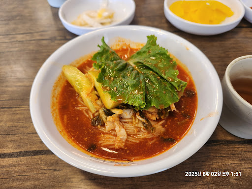 Read more여름에 시원한게 생각날때 옵니다 비빔국수가 메인이지만 콩국수도 맛이 좋습니다 콩국도 따로 판매하고 비지는 그냥 줍니다 무료로 결제는 선불로 먼저 카윤터에서 해야합니다 자리 잡고 난뒤에 결제를 그리고 전화 예약하시면 안기다리고 바로 먹을수 있습니다 주차장이 있구여 물만두는 구날그날 맛이좀 다른데 자주 가는 곳이기도 하고 만두도 갈때마다 시켜먹는데 이번에는 좀 고기 냄새가 났습니다 예민한 제 친구는 항상 났었다네요 군인들이 자주 오는 맛집인거같아요ㅠ갈때마다 군인들을 만납니다 ...