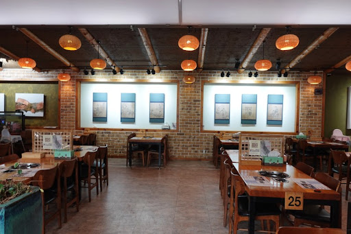 Honestly we were very surprised with the portions!! I had never seen soo much seafood for such a small price. I mean it was soo loaded with seafood that we couldn't finish it all?and took some home!! The side dishes are all you can eat.. they had a vegetable bar so you can add more vegetables to your soup.. my mind was blown. Even the robot Served sang songs to us as it served us.