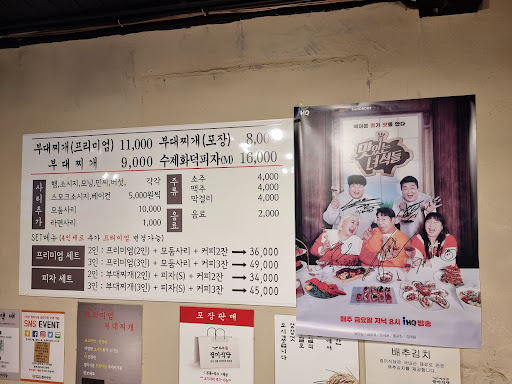 Read more꽤나 여러번 지나다닌 길에 몰랐던 부대찌개 전문점 입니다. 기차길 너머 한적할거 같은 동네에 차가 엄청 많이 주차 되어 있습니다. 분점도 있다 들었는데 이제야 앟았네요. 이것저것 부대찌개 종류가 다양합니다. 가장 기본 3인 주문. 김치와 무짠지 기본찬 내어주고 큼직한 냄비에 쑥갓 대파 가득담긴 부대찌개 내어 줍니다. 팔팔 끓여 맛을 보니 국물 아주 깔끔하고 시원해요. 베이컨,스테이크, 소세지 쵸퍼햄 등등 햄종류가 아주 많지는 않지만 다 품질이 괜찮고 맛도 짜지 않고 좋습니다. 그간 먹었던 부대찌개보다 아주 가볍고 깔끔하네요. 라면사리 넣으면 시원한게 반감되니 사리 안 넣는것을 추찬합니다. 다음에 지나가면 다시 찾고 싶은 맛있는 식당입니다. 뭣도 모르고 주문했는데 바로 옆 함께 운영하는 카페 메뉴와 세트메뉴도 조금이나마 저렴하게 판매하고...