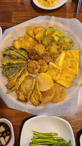 Read more일동에 몇 안되는 '전'집 중 유일하게 살아남은 집. 두 세군데 더 있었는데 다 문닫고 이 집만 꾸준히 영업하고 있습니다. 튀기듯 굽는 전이라 아주 좋습니다. 여러 메뉴가 있는데 다 훌륭하고, 주인 어른과 아들, 며느리가 운영하시는데 참 진절하십니다. 들려보세요. 명절 때 쓸...