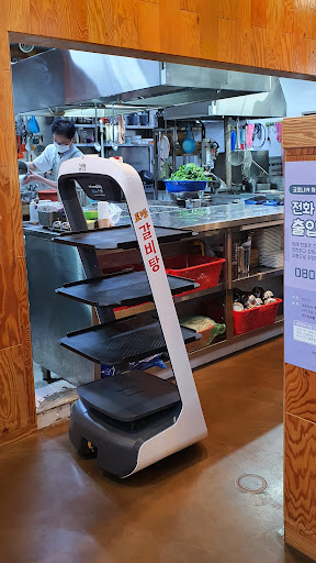 Read more육회비빔밥, 육회냉면, 육개장 맛있게 먹었습니다. 로봇이 좌석까지 음식을 가져다 줍니다. 천정의...
