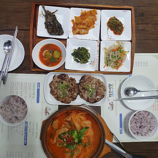 Read more포천 산정호수 방문했다가 시간이 많이 지나 점심겸 저녁 먹으러 방문했음. 산정호수 주변이 서울 외곽 먼지역이긴 하나 대부분 유원지 근처라 그런지 가격이 비싼 편임. 갈비 종류 음식점이 많은데, 인당 4만원꼴로 상당히 비싸서 연인이나 근처 리조트로 일부러 놀러온 경우가 아니면 쉽게 식사하기가 부담스러운 장소가 많았음. 그나마 제주여행은 갈비 보다는 고등어구이, 김치찜 등 가성비 좋은 소재로 음식메뉴가 서비스되고 있어 상대적으로 좋았음. 산정호수 유원지가 서울에서 먼 외곽지역이라 대중교통 이용보다는 자가용을 이용한 접근성이 좋음. 고등어구이는 맛도 괜찮았음. 김치찜은 묵은지 요리라 짜서 개인별로 호불호가 갈리므로 잘 선택해야 함. 산정호수 유원지 방문시에 함...