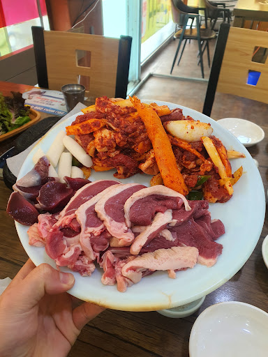 Read more삼겹불판에 오리고기를 구워먹으니 기름이 덜빠지고 오리고기와 조금은 어울리지 않는 부추무침.(양배추 겨자소스가 좋은데) 식당내 위생(고추가루 묻어있는 식탁, 먼지가...
