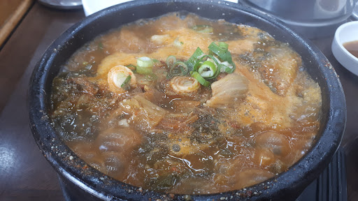 오랫만에 뼈 해장국 먹자하여 방문하였습니다. 점심 시간인데 한 테이블 손님 있었구요. 주차는 근방 대로변 아니면 공영주차장 이용해야 합니다. 홀은 넓구요. 주방에 1명? 홀에 2명? 일하시는 분들은 그렇게 보였습니다. 서빙된 밑반찬은 김치, 깍두기, 양파, 고추, 된장인데..깍두기가 하애서 ㅡ.ㅡ 깍두기 같지 않더라구요. 뼈해장국에 뼈는 2개 들어 있었구요. 냄새 안나서 괜찮은데 국물이 많이 진하더라구요. 1000원에 우거지 추가 가능한데 추가는 안했구요. 좋아하는 사람들도 많이 있을거 같은데 전 원래 국물류를 좋아하지 않아 진하니 먹기가 좀 부담스러웠습니다. 술 드시는 분들이나 진한 국물 좋아하시는...