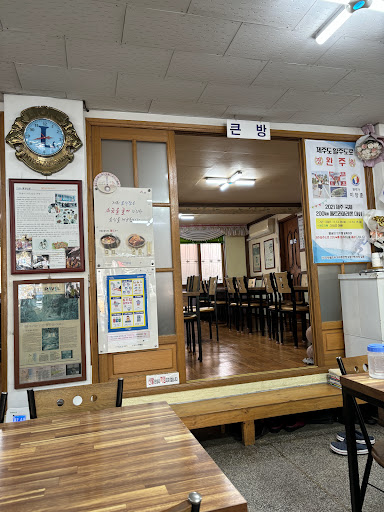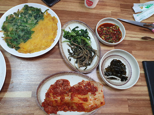 Nice homemade food at good price. The best of this place are the sidedishes (๋ฐ์ฐฌ), handmade kimchi, delicious pumping pancake and excellent Namul. The main course was okay, normal. Family place. The boss is an ultra-marathoner....