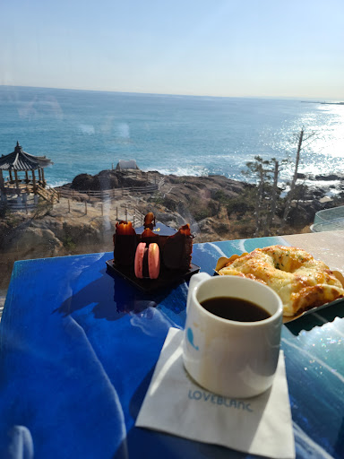 Read moreThere are so many coffee shops in Pohang. Just managed to stop by here. The drinks and cakes are quite expensive but it is worth it, especy I ordered oreo cake which costs 10,000 won, the cake is so delicious, worth the price, it s full of oreos. I ordered americano and lemonade. The parking lot is big enough. Actually basement is no kids zone but I can see some people bring their kids to sit there, so I also bring my 6th grade son with me and it was ok. The basement is connected to outside, where we can go to the beach, there are also photo spots, spots like somewhere in Greece. If you wanna sit near the big window, do not wait, just go to the basement, almost empty. Most of the ppl just sit on the first floor. They have good parking sistem, you must register your receipt before you go out...