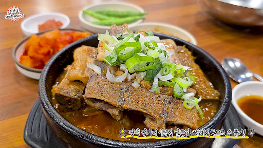 엄가네 시골집은 24시간 운영되며, 언제든지 뜨끈한 해장국을 맛볼 수 있는 곳입니다. 특히 이곳의 뼈해장국은 순한 맛, 보통맛, 얼큰한 맛 세 가지로 선택할 수 있어, 각자의 취향에 맞게 즐길 수 있습니다. 엄가네 시골집 얼큰한 뼈해장국에서의 대표 메뉴는 단연 뼈해장국입니다. 진한 국물에 푹 고아 낸 뼈와 부드러운 고기가 듬뿍 들어있어, 한 입 먹으면 속이 확 풀리는 느낌이에요. 특히, 얼큰한 맛을 좋아하시는 분들께 강력 추천드려요. 국물의 깊은 맛과 매콤함이 조화를 이루어, 해장용으로도 든든한 한 끼 식사로도 제격입니다. 인기 메뉴로는 뼈 우거지 해장국과 내장탕이 있습니다. 뼈 우거지 해장국은 우거지의 시원한 맛이 더해져 더욱 깊은 맛을 느낄 수 있고, 내장탕은 다양한 내장이 들어가 있어 씹는 재미와 고소한 맛을 동시에 즐길 수 있어요. 보통맛 뼈해장국은 깊고 진한 국물 맛이 일품입니다. 뚝배기에서 보글보글 끓어오르는 국물은 한 입 먹는 순간 속이 확 풀리는 느낌을 줍니다. 뼈에 붙은 고기는 부드럽고, 젓가락으로 살짝만 건드려도 쉽게 발라집니다. 고추냉이 간장 소스에 찍어 먹으면 고기의 풍미가 더욱 살아납니다.