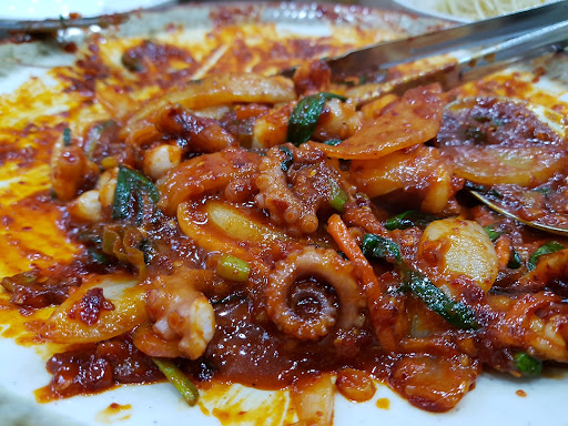 Several of us had the spicey octopus bibimbap and the live octopus based seafood hot pot. Bibimbap was really good. By itself, I would have given 5 stars. The hot pot, while it was good, it doesn't deserve 5 stars as it was a. It bland. Also, the bowl was too small to have sufficient amount of broth. It was rather expensive compared to the bibimbap (4x). I would definitely return for...