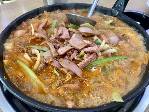 ย ย ย Read moreI was recommended this place by a friend as the most popular sausage spicy pot(Boodae chigye). This pot menu was served with seaweed paper wrap and a bowl of rice. For refreshing your mouth, it would better to order the can of sprite soda(cinder) at the finishing stage of meal. You can ask pouring more stock soup(yooksoo) for free if it boiled out. We loved adding ramen noodle...