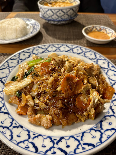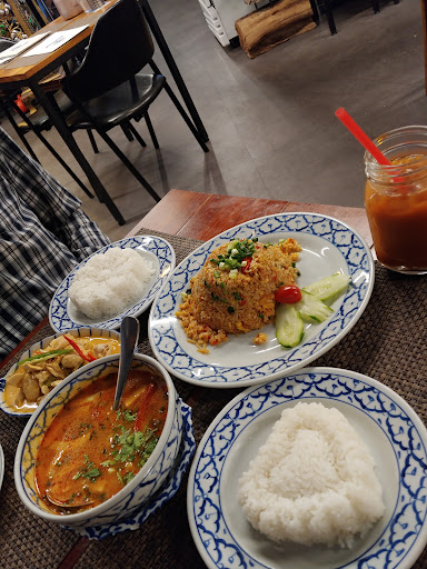 Spice ranges from 1-5...4 is a little upper edge for three of us people who โlike spicyโ. Pad Thai didnโt have enough peanuts, but my wife liked it anyway (Iโm not much of a pad Thai guy). The chicken fried rice with spicy basil and it was really good. Friends had the red and yellow curry (spice 4) and it overpowered the flavor for them. They are eating it...slowly... hahaha. All four of us will be back. Half block from the walkout gate. Update Went back and had the level 3 red curry...still on the warm side, almost couldnโt taste it because my mouth was burning. So, I think Iโll stick with level two and skip the profuse sweating...
