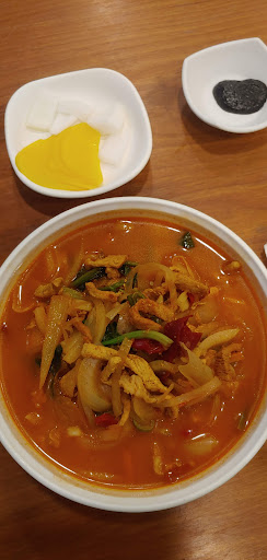 This place is the best chinese in songtan, but you can easily tell its been modified to fit korean culture. We had 7 different dishes and they were all good. They also have a chinese wine (made in korea, nothing like soju) that is very high proof. But it is very tasty and pairs great with the food. I was very satisfied but its obviously not the same as chinese food in china. My favorite dish was the.. cant remember the name but its was bao rolls with a pork and green onion filling that you had to fill the bao up with. Its a sharing style restaurant so there was 4 bao per plate. (Not in the picture by then we had 4 bottles of...