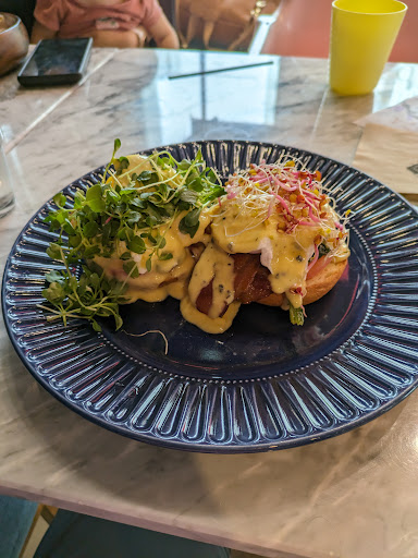 Read moreAmazing french toast. Absolutely amazing. Personally I prefer their regular eggs Benedict over their salmon one. I also really enjoy their burrata cheese salad. So many yummy fruits and nuts and a big ol chunk of cheese. Some possible inconsistencies though. Dining in once, the french toast and eggs Benedict came with a salad. Ordered french toast to go, no salad. Salmon Benedict, dining in, no salad. Not a deal breaker but I've come to enjoy a little salad at brunch now. Cinnamon rolls are also a delicious treat. We split the blueberry cream one and it's sweet but not...