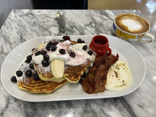 Read moreI was greeted by Ms. JJ as I walk into the restaurant. I order the Banana Pancakes w/ two side order of bacon and one order of eggs over hard and a hot caramel macchiato. The Banana Pancakes (pieces of banana cook inside, blueberries, raspberries, banana and whipped cream on top). The Bacon (4 strips of crisp, lean, and darkly colored) the way I like it. The eggs (Two of the most over hard completely cooked through egg whites and yolks that I have had in a while. The caramel macchiato came out hot but not too hot that you couldn’t enjoy drinking it. The food...