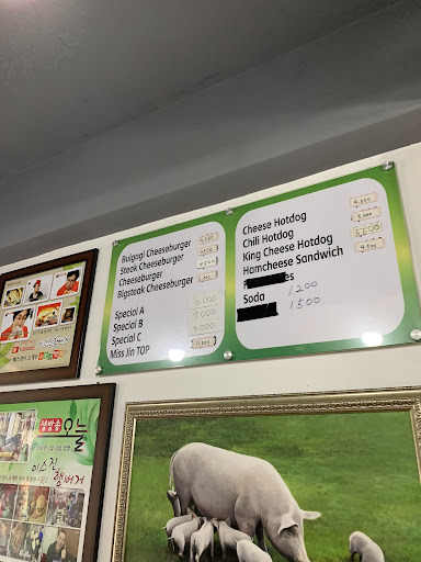 ย ย ย Read moreMs. Jin's Hamburgers makes a pretty tasty burger! Tastes like the flat top grill has seasoned to perfection over the years. They've got the standard burger joint fare: hot dogs, burgers, and fries. I think you get a beer, but I'm not sure. Of course, like most American food here, you can get it Korean style with extras like kimchi. I haven't tried the hotdogs, so can't comment. But if you're craving a greasy spoon diner type burger, this is the spot in Songtan Entertainment District. After a night of soju, you'll probably want to sit right down and scarf your food. But otherwise, I'd go with takeout. The seating is limited and kind of cramped. But overall, a must try for burger...