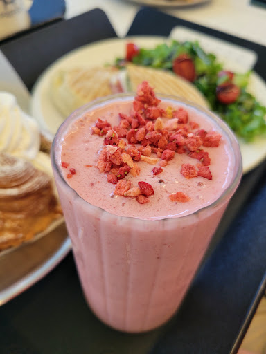 ย ย ย Read moreLoved the hot air balloon decor. Such a spacious place with lots of room to sit upstairs and downstairs as well. At least when we were there on Sunday morning. The strawberry smoothie was the most flavorful I ever had. The double cheese panini was delightful. The squid ink bread I liked more than I thought I would. Overall it was a fun experience with lots of choices and I'd...