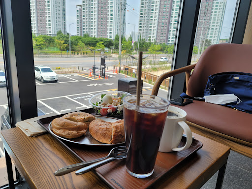 Read more만세로 가는 방향에 스타벅스 느낌의 건물이 올라가고 있을 때부터 기대했네요. 처음 방문때에는 드라이브 스루로 이용해서 내부엔 오늘 처음 가봅니다. 잠시 봤을 땐 뷰는 아쉽다였는데 오늘 찬찬히 돌아보니, 논에 물대어 있는 걸 봤네요. 한달 후 즈음부터 논뷰가 가능한 거였어요! 초여름의 초록빛과 황금들녁의 황금빛을 볼 수 있겠습니다. 그게 기대되더라고요. 베이커리 제품이 다양한 것도 좋고 맛도 있지만 오늘 먹은 허니치즈월넛브레드는...