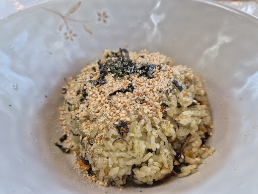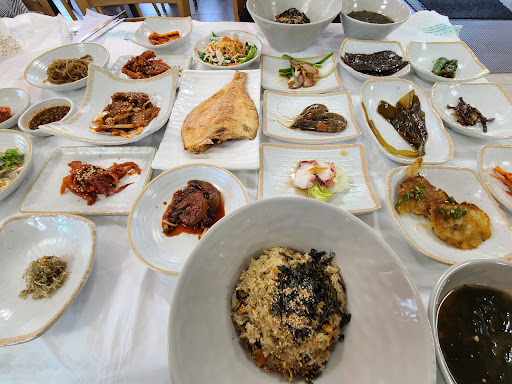 Too many assorted side dishes which are lack of uniqueness at all. The mussel rice, the main dish, is not bad but can't say it as a highly recommendation. It is uncomfortable to see a bunch of "prohibited customer action list" sheet attached side...