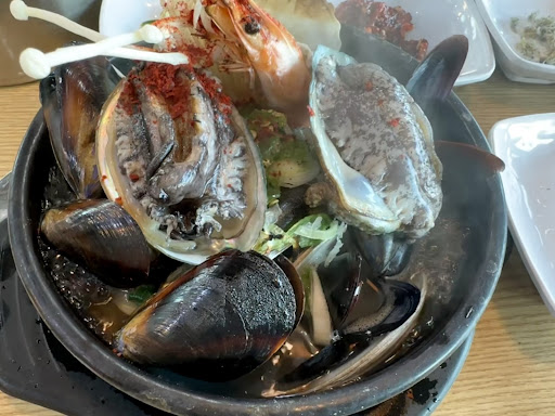 I had their signature menu 해물뚝배기 that has a lot of seafood, mostly shellfish.
