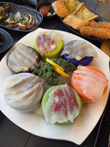 This is a restaurant where you can eat sashimi, crab, pizza, pasta, and gambas all at once. The price is a little expensive, but the service and atmosphere are good. If there is someone in your group who does not eat seafood well, this is a really good choice! The food is of...