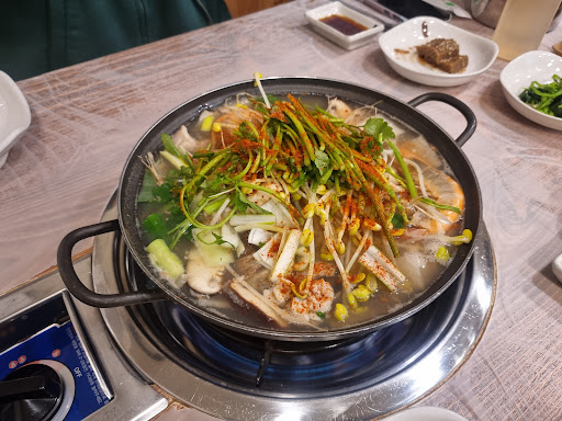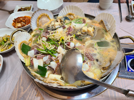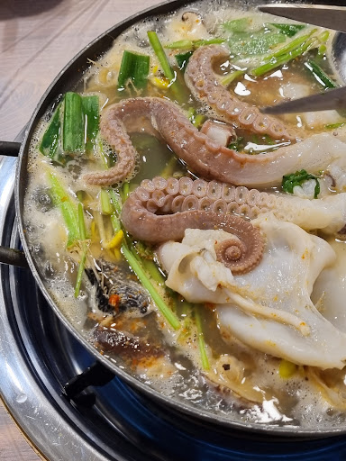 Read more문어해물탕으로 삼척에서 가장 유명한 곳인듯. 가격은 다소 있지만, 문어 자체를 사장님이 직접 잡아서 파는 곳이라 퀄리티가 상당함. 특히 문어가 잡히지 않은 날에는 해물탕이 없을 수 있으니 미리 전화를 하고 방문해야 하는 곳. 문어해물탕에 가리비랑 전복을 섞어서 선택할 수도 있고, 한가지를 선택할 수도, 추가할 수도 있음. 다른 메뉴는 없음. 해물탕을 세팅하고, 끓이는 법이나 먹는 법을 굉장히 자세히 설명해줌. 서빙하시는 분이 사장님한테 지속적으로 교육을 받는듯. 다소 부족한 부분이 있으면, 이런 저런걸 지시하는 소리가 계속 들림. 문어는 워낙 신선해서 그런지, 상당히 쫄깃하고, 부드러움. 쫄깃한 정도로보면 질길 것도 같은데, 막상 먹어보면 질기지 않음. 국물을 흰색 국물인데, 실제로 먹어보면 살짝 칼칼함. 밑반찬은 다소 부실한 느낌이 아쉬움. 해물탕을 먹으면 술한잔 할 수 있는 좋은 곳임. 해물탕을 먹고 사리는 라면, 칼국수가 있음. 밥은 공기밥. 이외의 메뉴들도 해산물 종류 들인데, 살짝 어린이들이 먹을 수 있는 부분이 부족한 느낌은 있음. 삼척에 손님이 오면...