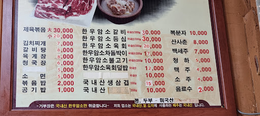 아 그리고 안타깝고 아쉬운 것은 메뉴판에 한우암소갈비, 등심, 육회, 차돌박이, 소불고기 등 한우암소 관련 메뉴들이 있는데 더 이상 한우 메뉴는 팔지 않으신다고 하니 참고하시길 바란다. 이 집은 삼겹살 단일 메뉴만 되는 듯...