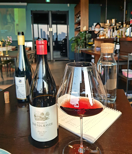 This lovely wine bar is conveniently located on the 6th floor of the high rise building in the riverside. Five of us visited at the dinner hour. We were welcomed and escorted to the spacious table with a view. The seating is very comfortable. The atmosphere (lighting, music, decorations etc) is cozy and consistent, the food prepared in the open kitchen is fresh and delicious, staff were friendly and knowledgeable, and their wine list is amazing. They offer lots of Austrian wines which you don’t get to taste that often. We had a bottle of Domane Wachau - Freire Weingartner Achleiten Gruner Veltliner Smaragd 2021 and a bottle of Johanneshof Reinisch Pinot Noir 2020. Both were very good, especially the mineral abundant gruner veltliner was excellent! I definitely would love to...