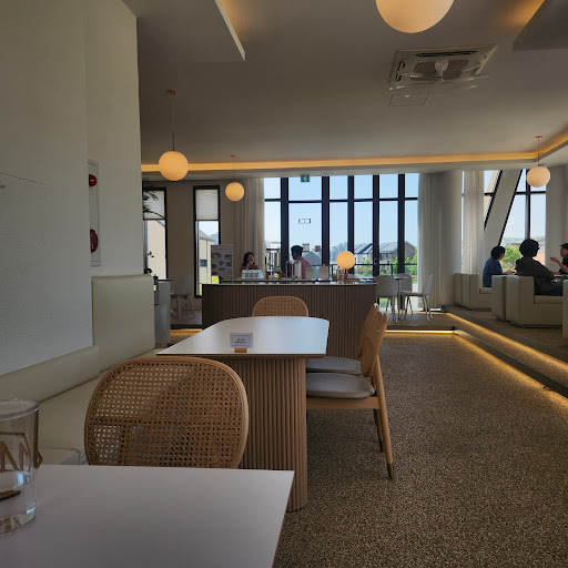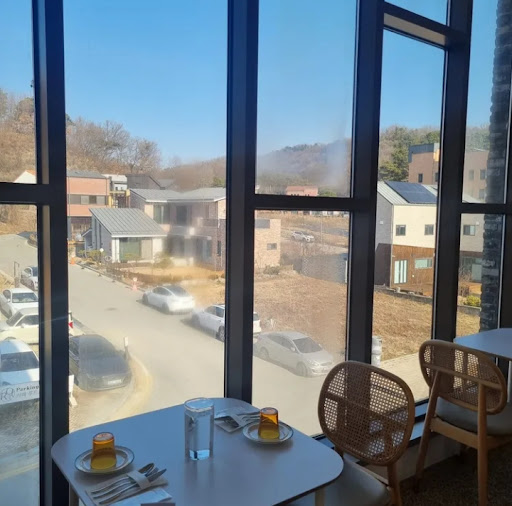์๊ณ ์๋ดํ ์นดํ๋ก, ํ๋์ ์ธ ๋์์ธ์ด ๋๋ณด์ ๋๋ค. ์ฒ์ฅ์ด ๋๊ณ ํฐ ์ ๋ฆฌ์ฐฝ ๋๋ถ์ ์์ฐ๊ด์ด ๊ฐ๋ ๋ค์ด์ค๋ฉฐ, ์ฐ๋ ์ฒด์ด์ ๋ฎ์ ์ํ๋ก ๋ฐ๋ปํ๊ณ ์ธ๋ จ๋ ๋ถ์๊ธฐ๋ฅผ ์์๋ ๋๋ค. ๋ชจ๋ ํ ์ด๋ธ์ด ์ฐฝ๊ฐ ์ชฝ์ ๋ฐฐ์น๋์ด ์์ด ๊ณต๊ฐ์ ์์ง๋ง ํ๋ผ์ด๋นํ๊ณ , ์ปคํผ๋ฅผ ๋ง์๊ฑฐ๋ ์์ ํ๊ธฐ์ ํธ์ํ ๋ถ์๊ธฐ์ ๋๋ค.