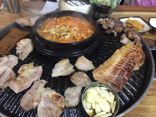 Read more바닥이미끌거리지만 고기가좋고맛있어요 찌게는싱겁지만 맵지않아서 아이와함께먹을수있으므로만족 볶음밥강추.완전 현지분들가는곳입니다.동네엄마들오시는곳^^아주작게 놀이공간 게임기있어요.우리아이가좋아했어요.다만 호텔들과거리가있으므로 술을마실수없단게단점.저녁8시되믄 완전 빌라촌이라 껌껌해요^^;;(서울사람 적응안됨;;)같은블럭안에 하모니마트?동네마트있으니 들러서 제주맥주사세요...