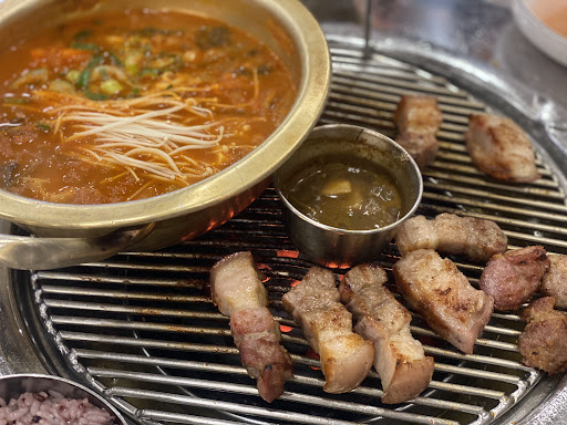 For those looking to dine late, this place is open later than most others in the area. The staff was extremely friendly, and the food was amazing. The pork was phenomenal, and they have a variety kimchis made in house, which the staff explained were tailored to eat with pork so as to not compete with the pork’s natural flavours. We also had Naengmyeon, and peanut Makgeolli. Also, you get to pick out your own large cuts of meat, the price of which was reasonable compared to the other places we have been in Jeju and mainland Korea. The staff will also advise on which cuts of the meat go best with which sides / sauces (I highly recommend the anchovy sauce) Overall - food was 10/10, and left us full...