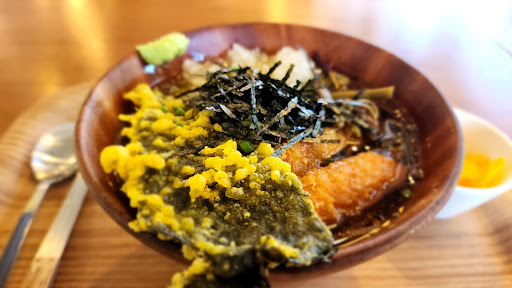 고사리 튀김 냉모밀. 김부각 튀김으로 데코가 된 소박한 사이즈의 담음세 그릇에 담겨나온다. 비쥬얼에 많은 신경을 쏟은 듯 하다. 아쉬운 점은 메밀면이 너무 익혀졌을까 너무 뚝뚝 끊어진다. 면을 흡입할 때 식감이 부족하다. 육수 안에 들어 있는 조각 레몬은 차라리 육수 안에 넣지 말고 따로 놔서 튀김에 직접 뿌려 먹게...