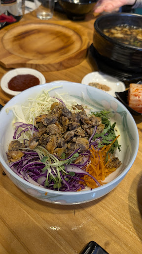 Texas BBQ with a touch of Korean influence! It was so good! I really enjoyed my meal here. We got the bibimbap, lamb, and the beef rib platter were so good! He makes his own gochijang sauce for the bibimbap and it made it really unique and tasty!