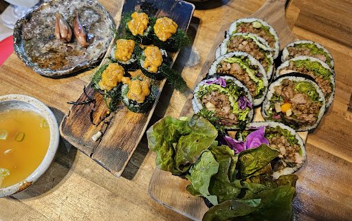Read more다른 리뷰에서는 사장님 불친절하다 하신 분들도 계시는데 사장님 너무 친절하세요! 아무래도 혼자서 하시고 손님은 끊임없이 들어오다보니 지쳐서 그러실 수 있지만 제가 본 사장님은 명절에도 예약이 있어서 나오셨다고 친절하게 재료에 대해 설명 해주셨어요:) 김밥이라고 해서 비싸게 느껴질 수 있지만 오히려 맛이 좀 떨어진 식당에서 바가지 쓰고 나오느니 정갈하고 푸짐한 김밥 한 줄이 더 낫다고 생각합니다! 감태로 밥을 싸시고 자연산 톳에 마라도 성게알까지 진짜 고소하고 신선하더라구요~ 흑돼지고사리 김밥도 쪼꼼 간간하게 느껴질 수 있지만 야채들을 든든히 넣어주셔서 정말 맛있게 먹었습니다. 음식 알레르기나 매운거 못 먹는지까지 친절하게 다 물어봐주시고 정갈하게 담아주시고 김밥 한줄에 사장님의 정성이...