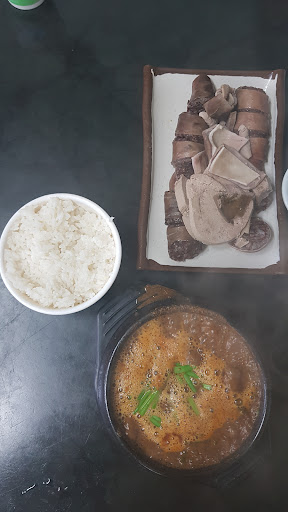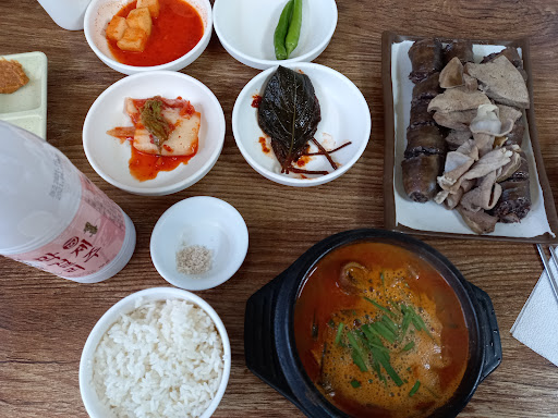 Really delicious and unique blood sausage soup! The soup is made with lots of perilla seeds (we are guessing..) so it has a very thick and creamy taste, unlike any other sundae soup we've had in Korea! Owner was nice and friendly too! Really happy with this...