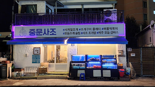 중문에 있는 조개전문식당인데 조개구이와 꽃게찜,탕도 가능하고 해물칼국수와 해물라면도 있고 괜찮은 식당입니다.치즈와 같이 구워먹으니 더 맛있고 술안주로도 괜찮고..단점이라면 주변 주차하기는 상당히 힘듭니다.그리고 조개모듬은 맛은 있지만 양이 조금 부족해서 칼국수나 볶음밥을 추가로 시켜야 배가 채워집니다.암튼 술안주로는 최고이고 3명이하는 먹기 딱 좋습니다. 우리 막내도 너무 잘먹어서 애들 있는...