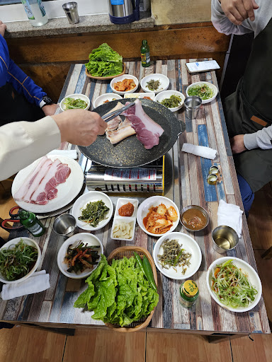 현지에서 인기있는 흑돼지생고기 집입니다 가성비 좋고 직접 통고기를 썰어서 구어먹는 집으로 최고의 고기네요 강추합니다 서귀포 쪽으로 여행 가시는분들은 꼭 들러보세요 인생 흑돼지 집이 될듯합니다 실내는 여는 식당과 비슷하게 허름하지만 맛은 최고이고 막판에 고기 조금 남겨서 밥 볶으면 최고입니다 기름 살짝 뿌려서 볶으면 좋고 콩나물과 기름은...