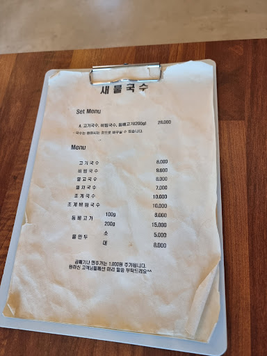 제주도 방문 중 발견한 진귀한 보석, '새물 국수'입니다. 이곳은 고기국수로 유명한 전문점인데요, 그 명성은 과연 헛되지 않았습니다. 첫 입부터 매혹적인 담백한 고기육수의 맛이 입안 가득 퍼지며, 제주도의 정취를 한껏 느낄 수 있었습니다.