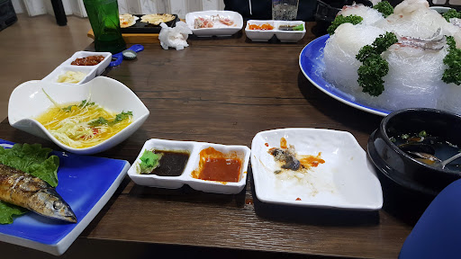 As a well travelled tourist, I would advise you to AVOID this restaurant. They pressurise you to order more than you need and their food is way too overpriced for the terrible quality. I was travelling alone and the moment I sat down and the lady knew I was a tourist (because I cannot speak Korean although I look asian), she insisted I order the sashimi set for 2 persons which cost 110,000 won (that's 80 usd!) and when I told her (using google translate) I only wanted a small portion of food, her face turned unhappy immediately and kept insisting I order the 2-person item on the menu. In the end I went for the mackeral and cutlass sashimi which cost 60,000 won and she still asked me to order other grilled items etc and I refused. So customer service is shady af and I was already not too happy. When the sashimi came, it was arranged very nicely but the quality is NOT good. The slices were uneven in thickness and the cutlass sashimi was very tough. Barely finished half and I paid and left. You've...