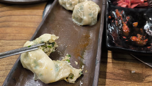 Their handmade Korean dumplings, or Mandu, are a standout. My favorites were the black pork (white) and the kimchi (red). The octopus (black) dumplings are similar to the red ones but include a slice of octopus and are slightly more oily. The abalone (green) dumplings resembled the white ones but lacked a strong abalone flavor. Prices were very reasonable, making it an excellent value for the quality.