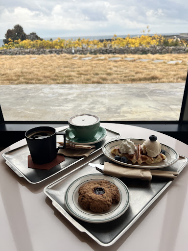 We stopped by Seal espresso for a coffee and snack break on our way to Seongsan. We ordered a hot chocolate, americano and vanilla latte and they were all very tasty. They also have a little coloring area where you can then stick up your drawings on the wall. Good for keeping your kids busy!