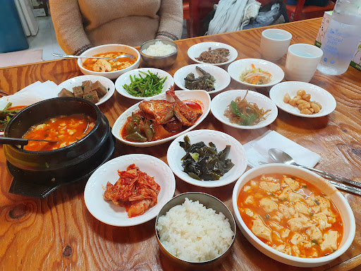 Read more숙소 주차장 바로 옆이라 아침식사하러 갔어요 남자사장님 혼자 운영하시는 엄마의 손맛ㅎㅎ 가게가 낡고 테이블도 4개 밖에 안되서 분위기는 좀 그래요.. 별로 기대 없었는데 8000원 식사에 계란후라이까지 11첩이라니!!!!! 김치찌개가 고기가 가득 들어가서 먹어도먹어도 고기가 계속 나오네요 반찬하나하나 깔끔하고 맛있고 고등어구이가 노르웨이산은 아니고 제주산 같은데 엄청 촉촉하고 맛있네요 아이들과 같이 가서 사장님이 아이들 먹어보라고 서비스도 많이 주시고 굉장히 친절하세요 근데 식사 마무리 쯤 할머니께서 오셨는데 분위기를 보아하니 그분이 원래 사장님이고 지금은 아드님께서 운영하시는 듯 보였어요 남자사장님이 음식도 굉장히 깔끔하고 맛있게 잘하시네요 서귀포...