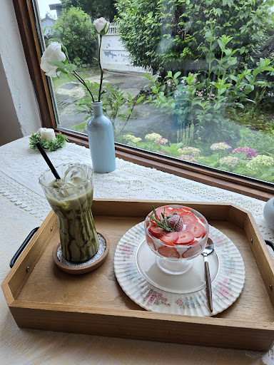 Read more한적한 시골마을 분위기 속에서 여유롭게 힐링할 수 있는 카페였습니다🥹 창밖으로 보이는 정원과 돌담뷰가 운치 있고, 조용한 분위기가 너무 좋았어요. 특히 시즌메뉴인 생딸기가 듬뿍 들어간 수제 생딸기 티라미수 디저트가 신선하고 맛있어서 만족스러웠습니다. 제주 동쪽 여행중 감성 가득한 카페를...