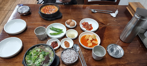 We order the Haejang-guk and Tofu soup and both were delicious! It was my first time eating hangover soup and I loved it. The taste was beautiful, well spiced and surprisingly the congealed blood tasted quite good! There were plenty of vegetables in the soup which I really appreciate. Likewise the tofu soup was excellent, though a little spicy for my husband's tastes. The service was great and the lady who took care of us had a great sense of humour and great patience/kindness since we don't speak Korean and were taking time to translate the menu. We both very much enjoyed our meals and would return again if we came back in Jeju. Would recommend to anyone wanting a great...