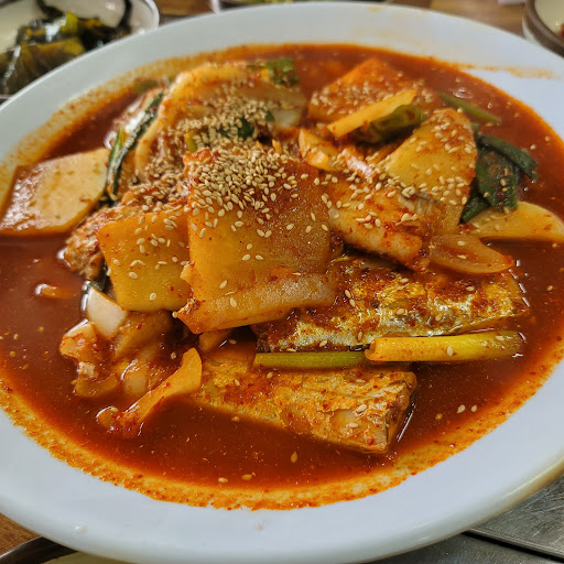 Read more갈치조립과 적작뼈국을 먹었습니다. 적작뼈국(접작뼈국)은 약간은 짠 느낌이 있었지만 정말 부드럽고 맛있었어요. 청양고추와 고추가루를 주시는데 먹다가 타서 먹으니까 두가지 음식을 먹는것 같아서 좋았습니다. 갈치조림 대 시켰는데 양이 많지는 않아요.. 아무래도 갈치가 저렴한 생선이 아니라서 그런듯 합니다. 특별히 맛있지는 않았는데 먹을만 했어요. 성인 두명이서 시키면 배부르게 먹을것 같네요. 저는 성인2 청소년2 이렇게 넷이 가서 갈치조림 대. 적작뼈국(접작뼈국)1개 시켜서 배부른게 먹었습니다. 참고로 저희가족은 많이 먹는편이 아니라서요.. 각 1인분 먹으면 배터져라 하는 가족입니다ㅎㅎ 맛은 둘다 먹을만하다. 라는 평이구요. 아쉬운건 서빙하시는분이 외국분이신데 말을 잘 못알아 들으시고.. 못하세요. 다행인건 식당이 크지 않아서 주인아주머니가 바로 알아들으셔서 소통에는...