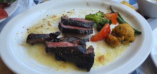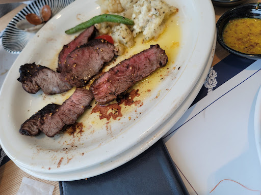 스테이크를 미리 구워걸로 주는거 같습니다. 서비스개념으로? 주는같지만 초벌도 아니고 미리 구운 스테이크를 주는 경우가 어딨는지 모르겠습니다.. 온장고에 오래 보관해서 그런지 고기겉면도 말라있고 옆에 올려주는 샐러드조차 말라있어서 끈적끈적. 아스파라거스가 열을 오래받아서 그런지 흐물흐물거리더군요.. 심지어 접시는 닦지도 않고 보관했나? 접시옆에 고기핏물이 다 말라있습니다.